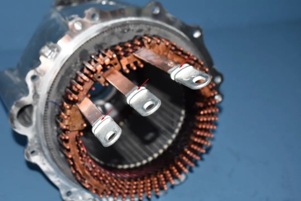 其次,是通用Volt發(fā)電機。這是一款插電式混合動力汽車,采用了兩臺扁線電機作為主要驅動力源,并配備了一個小型汽油發(fā)動機作為備用發(fā)電裝置。