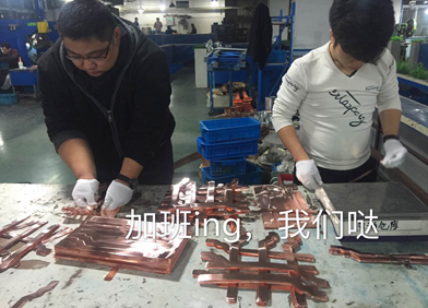 現(xiàn)在是2017年12月18日,星期一晚上23點,天氣還是比較寒冷的,但是我們金橋銅業(yè)的小伙伴們還在擼起袖子加班生產(chǎn)新能源汽車銅箔軟連接,絲毫感覺不到寒意,反而有點熱的要命。