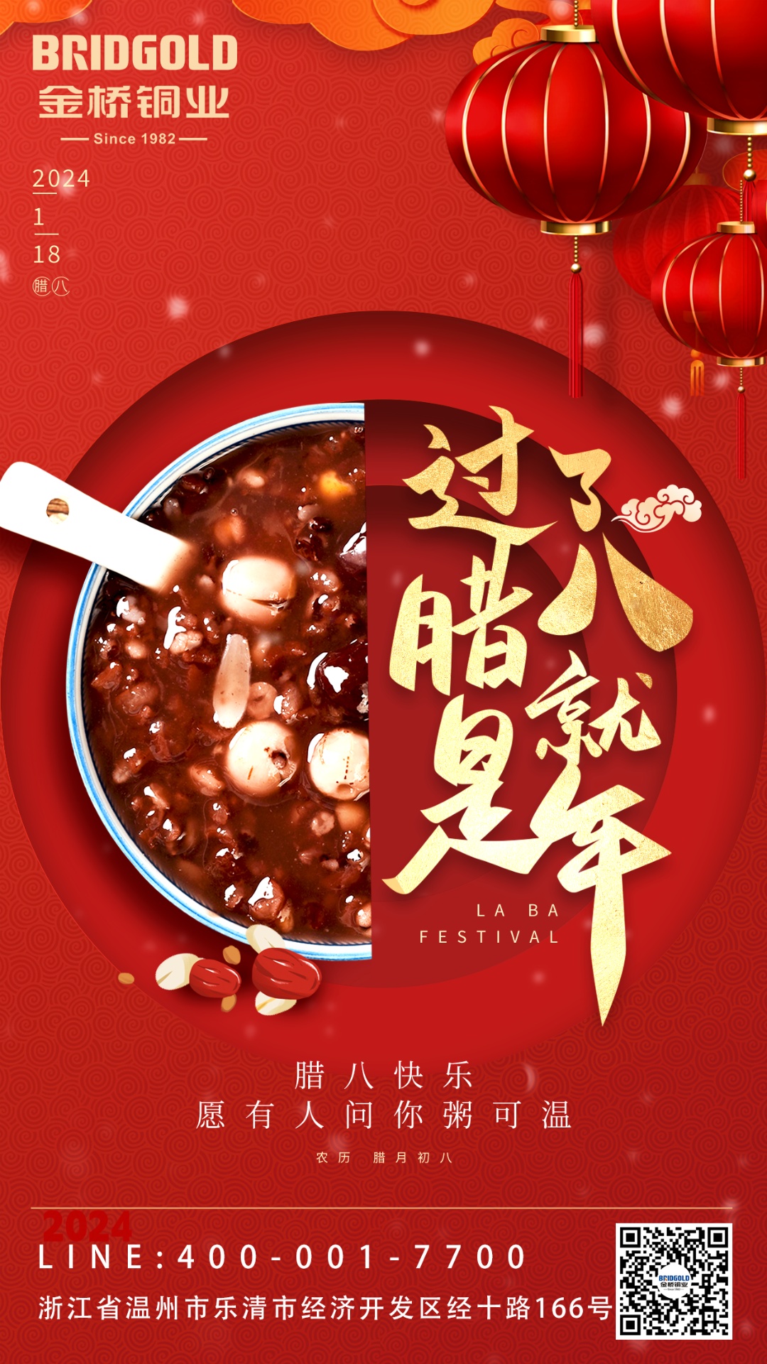 一進(jìn)臘八,“年”以倒計(jì)時(shí)的腳步臨近。年味兒越來越濃,辛苦工作一年的人們,開始感受到家的溫暖,故鄉(xiāng)的一切隨風(fēng)而至,歸心似箭。1月18日臘月初八,為了讓大家感受到屬于臘八節(jié)的濃厚氛圍,金橋銅業(yè)為員工們熬制了香甜可口的臘八粥,在冬日里送上暖暖問候。