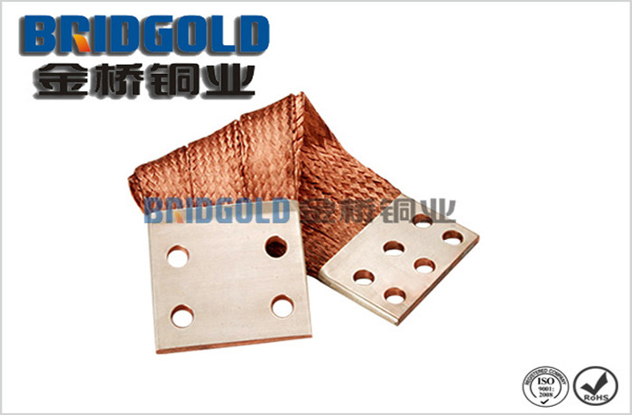 - 銅編織線軟連接采用T2無氧銅桿,經(jīng)多道擠拉工藝拉制成絲,表面裸銅或鍍錫或鍍銀,再進行編織成線,兩端壓鍍錫銅管或純銅管而成。
